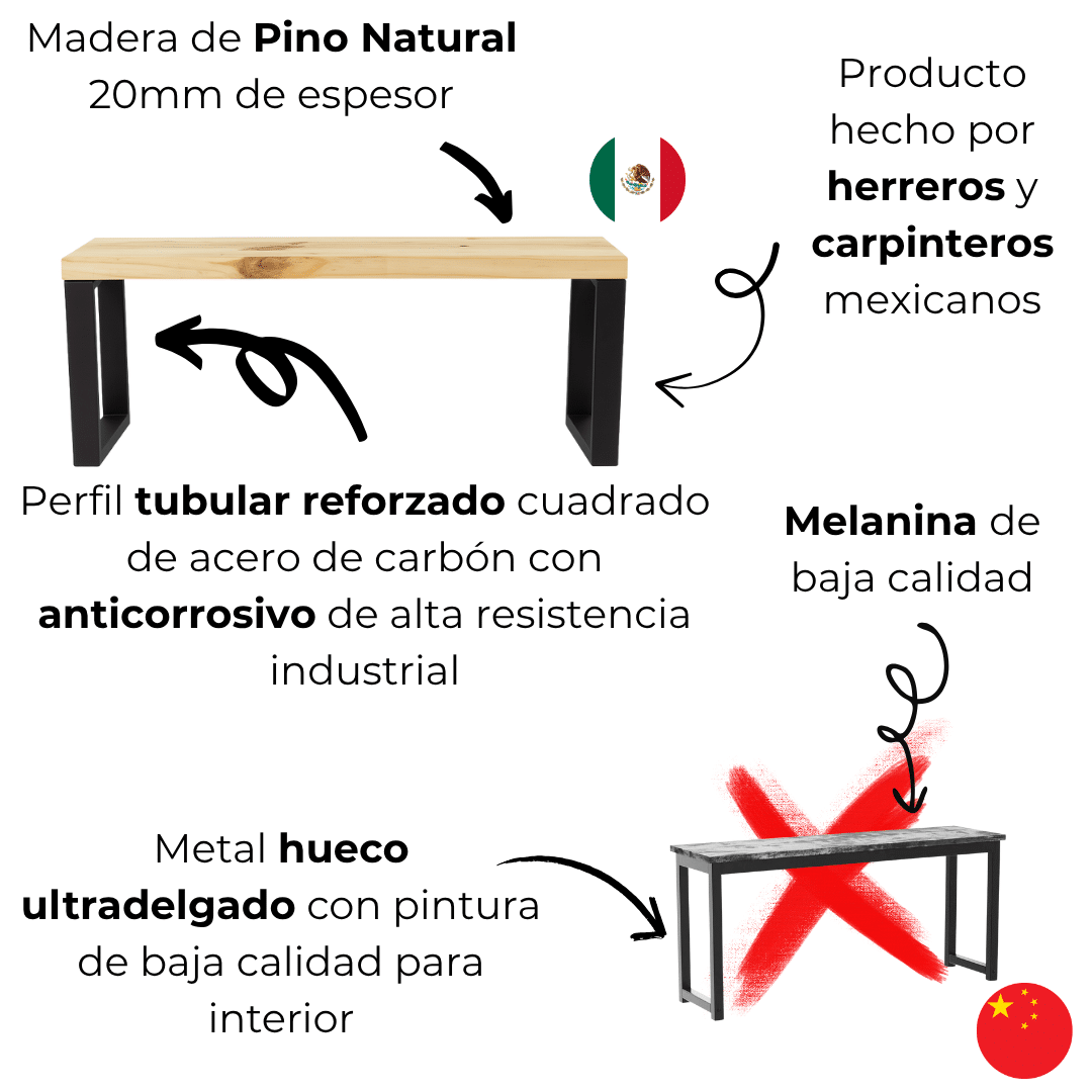 Cuidado y Mantenimiento: Para mantener el Banca Desarmable Estilo Industrial en óptimas condiciones, simplemente límpialo regularmente con un paño suave y húmedo.