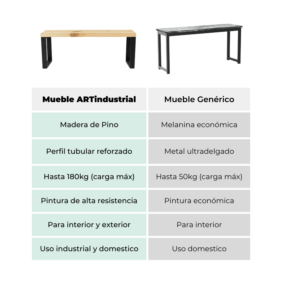 Comparación con Productos Similares: En comparación con otros bancos desarmables en el mercado, este producto se destaca por su diseño industrial moderno y su estructura robusta. Su combinación única de estilo y funcionalidad lo diferencia de la competencia y lo convierte en una opción superior para una variedad de aplicaciones.