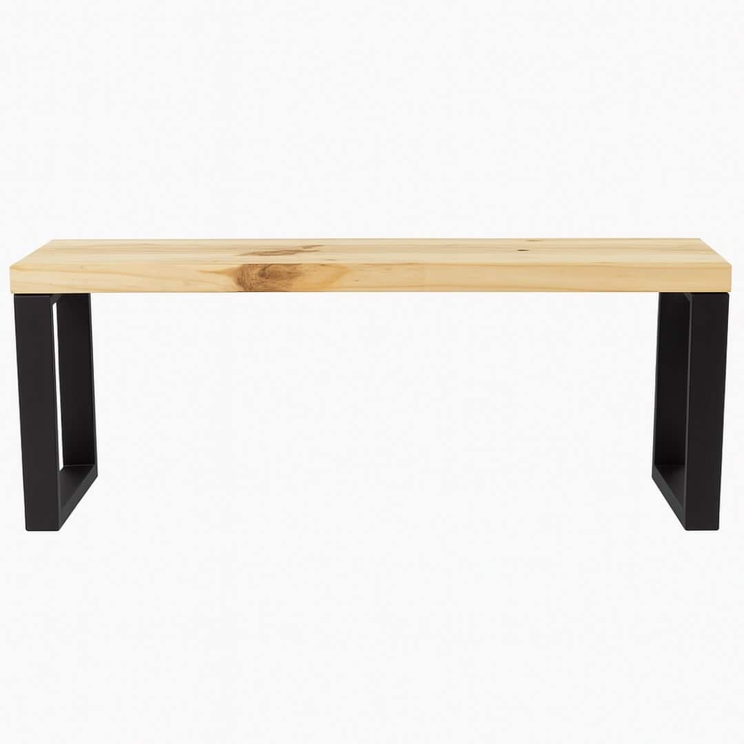 Esta banca está diseñada en un estilo industrial moderno, con acabado en metal negro y detalles de madera que añaden un toque de calidez.