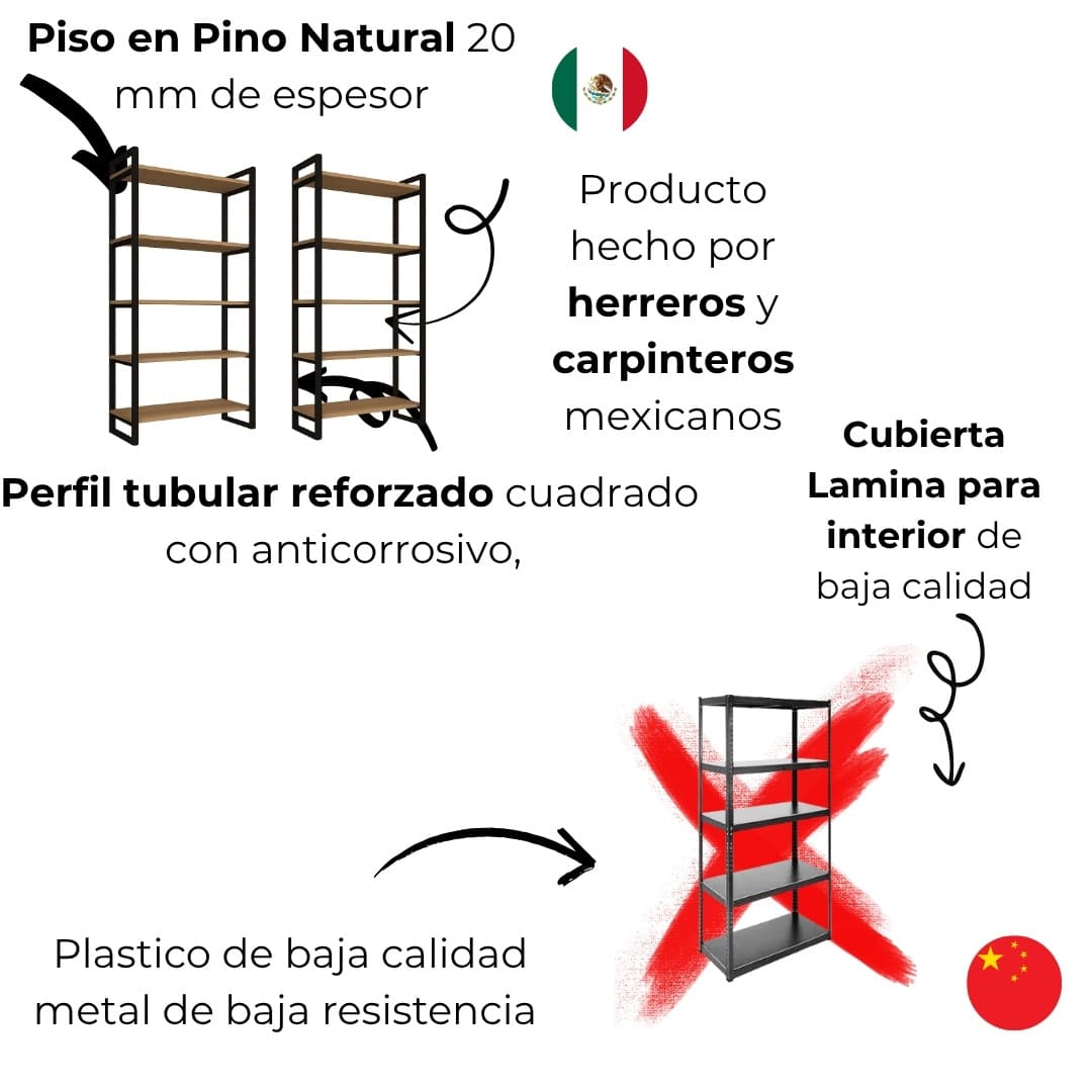 Características y especificaciones técnicas: El Juego de anaqueles para negocio Estilo Industrial es una solución robusta y elegante para el almacenamiento y la exhibición en cualquier espacio.