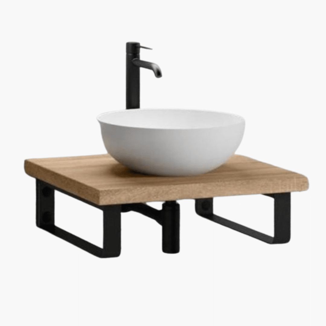 Historia o Contexto del Producto: El Porta Lavabo Industrial Compacto se inspira en el diseño minimalista y funcional del estilo industrial, que busca combinar belleza y utilidad en el mobiliario de baño.
